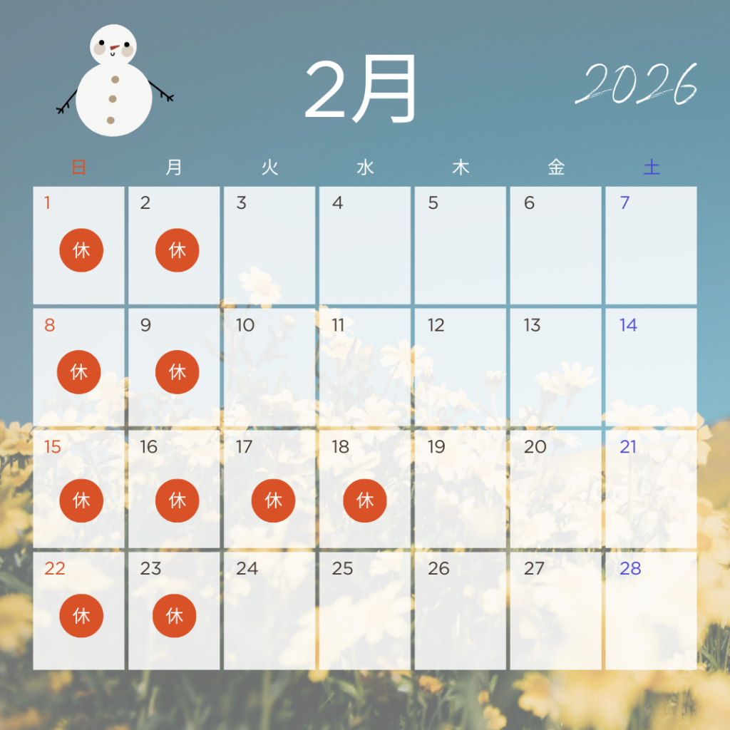 - 2026年2月の営業スケジュールです。